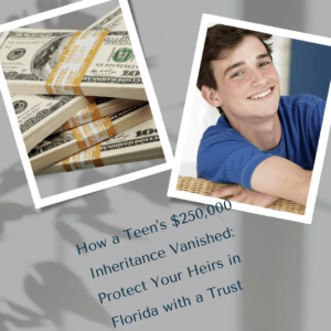 The story of the teenager who lost $250,000 is a powerful reminder of what’s at stake when parents leave their money in outright distributions to children. It’s not just about leaving wealth behind; it’s about leaving a foundation for wise decision-making and financial stability. An inheritance trust can be the guiding light for your heirs in Florida, helping them navigate their inheritance responsibly. Contact our estate planning team to discuss how a trust can help secure your family’s future and preserve your legacy as you intend.