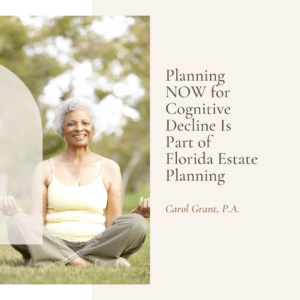 These conversations are not easy or enjoyable. However, they are crucial to protecting yourself and your family from the unexpected and the inevitable. Making a plan for yourself and being prepared is the most you can do, and it’s also the only thing you can do. Talk with an experienced estate planning attorney to put your estate plan in place sooner rather than later. Don’t wait until it is too late. If the cognitive decline is advanced you might not be able to hire an attorney to assist you with planning. To make an estate plan in Miami, Florida, including a plan for cognitive decline, book a call with Carol Grant, PA today!